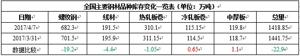 縱觀全國(guó)市場(chǎng),本期全國(guó)35個(gè)主要市場(chǎng)螺紋鋼庫(kù)存量為682.3萬(wàn)噸,減少19.2萬(wàn)噸,降幅為2.74%;線材庫(kù)存量為191.5萬(wàn)噸,減少4.4萬(wàn)噸,降幅為2.25%。而從全國(guó)線材、螺紋鋼、熱軋板卷、冷軋板卷、中厚板五大品種庫(kù)存總量來(lái)看,本期全國(guó)綜合庫(kù)存總量為1418.85萬(wàn)噸,較前一周減少22.9萬(wàn)噸,降幅為1.59%??傮w來(lái)看,本周全國(guó)鋼材市場(chǎng)庫(kù)存連續(xù)第七周出現(xiàn)下降,目前的庫(kù)存水平較去年同期增加34.37%。目前國(guó)內(nèi)建筑鋼材需求尚可,但板材需求持續(xù)低迷,使得國(guó)內(nèi)鋼材市場(chǎng)庫(kù)存在旺季消化速度不及預(yù)期,市場(chǎng)供應(yīng)壓力有所加大。